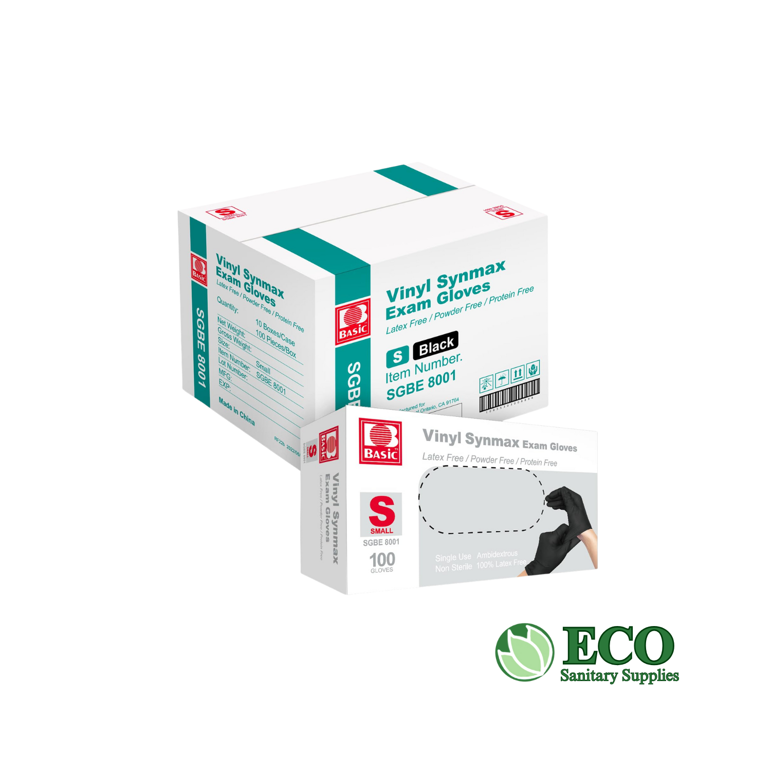 Black Vinyl Synmax Exam Gloves 1000/Case (S-XL) 8001-8004