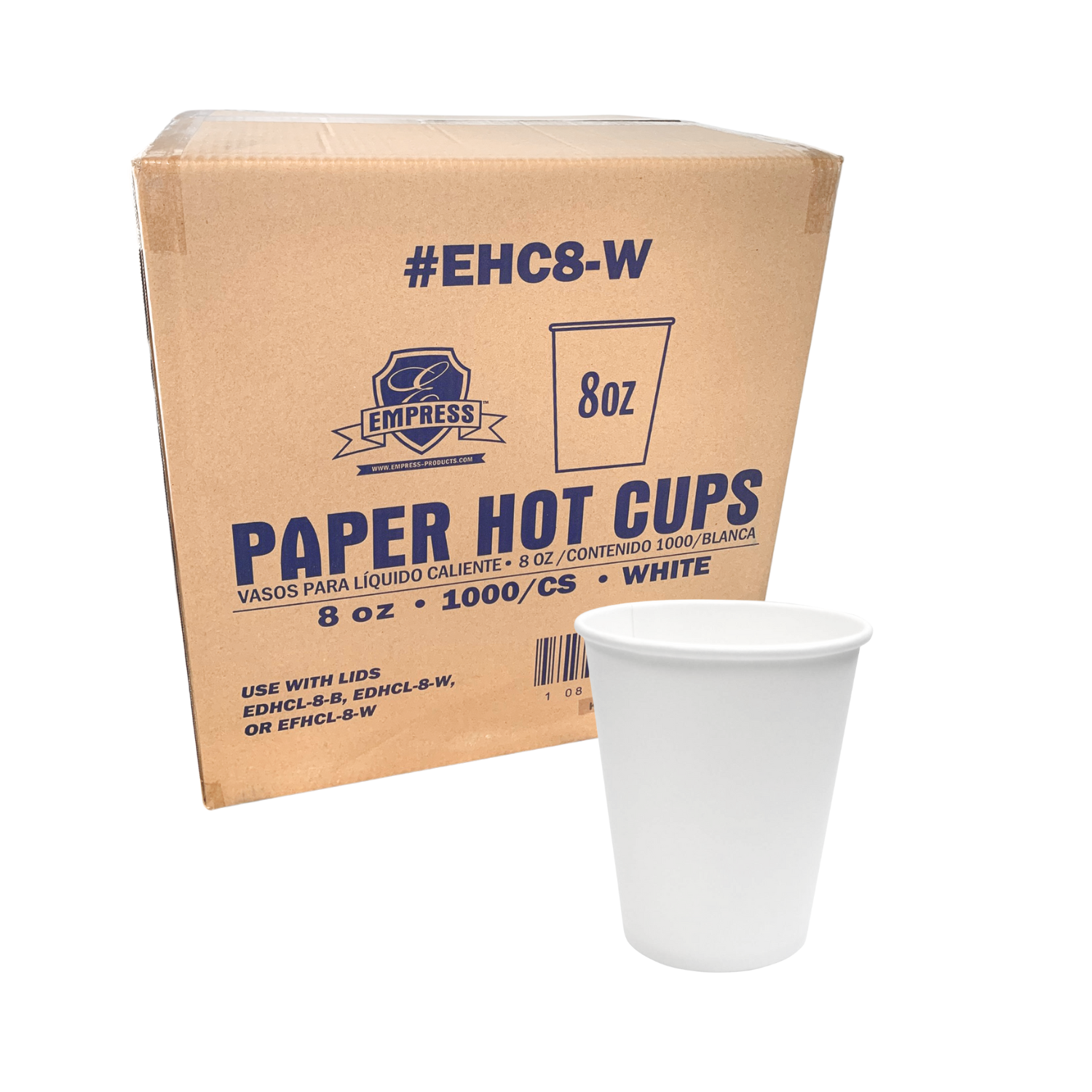 EMPRESS Paper Hot Cup, 8oz., White, PK1000