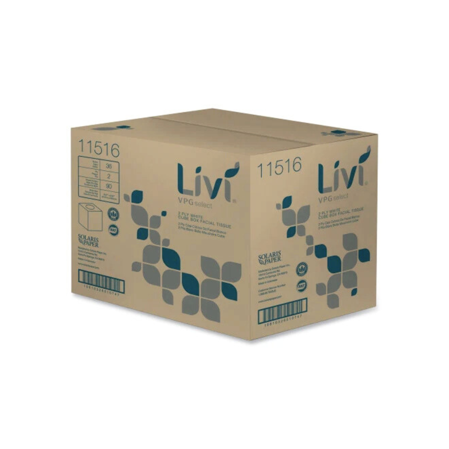 Livi VPG Select Cube Facial Tissue, 2-Ply, White, 90 Sheets/Box, 36 Boxes/Carton (11516)
