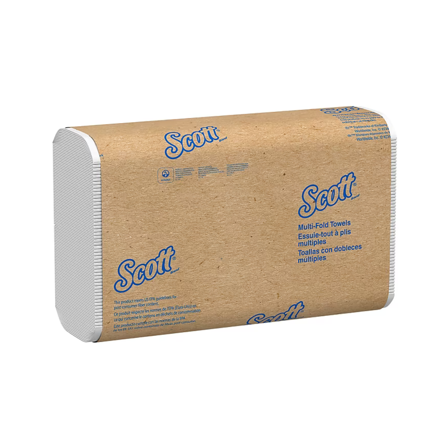 Scott® provides reliable balance of efficiency, performance and value. Whether you need commercial paper towels for your office kitchen or restroom, Scott® Multifold Paper Towels are an excellent—and economical—choice. These commercial paper towels feature Absorbency Pockets™ that absorb a lot of water fast, for superior hand drying. They're designed to reduce waste in your office or business, since they fit into any universal dispenser for trifold paper towels or multifold towels (which helps control over use). Since these Scott® folded paper towels meet EPA guidelines for minimum post-consumer waste content and are FSC® and ECOLOGO® certified, you know they're great choice.